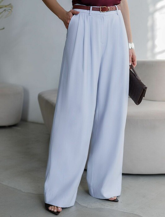 22.03 Vilatte Брюки палаццо с защипами из плотного лиоцелла D24.313 голубой