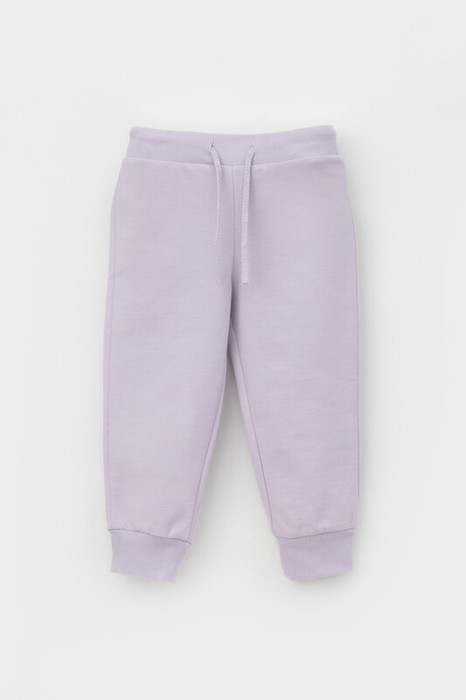 Трикотажные брюки для девочки из петельчатого футера. Эластичный пояс на резинке регулируется по ширине с помощью шнурка, внизу эластичные манжеты.