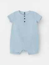 Легкий песочник для мальчика из мягкого хлопокового муслина с застежкой на пуговицы. Изделие сохраняет цвет, форму и фактуру жатости после многократных стирок.