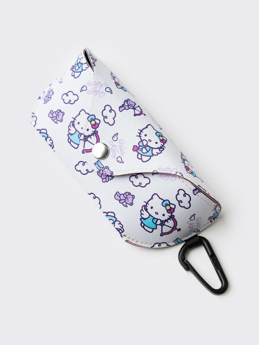 Чехол для солнцезащитных очков. Материал верха принтованная искуственная кожа. Принт с HELLO KITTY подходит под коллекцию. Чехол закрывается на кнопку. Внутри мягкая подкладка из микрофибры. Чехол имеет карабин,  с помощью которого чехол можно прикрепить на сумку или рюкзак. В подарок идет салфетка из микрофибры для протирки очков.  Параметры чехла: 16*7*4,5 см