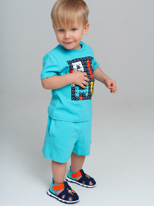 Сандалии детские для мальчика. При ходьбе сандалии издают писк - для ребенка это интересный игровой элемент, а мамы будут всегда слышать своего ребенка на детской площадке. При желании пищалку можно вынуть. Сандалии с закрытой пяткой и удобным ремнем с липучкой, который позволяет ребенку обуваться самостоятельно. Модель выполнена из экологичного и гипоаллергенного хлопкового материала, который идеально подходит для маленьких детей. Разные патчи на правой и левой полупаре позволяют ребенку в игровой форме научиться определять правую и левую ножку. Двухсоставная подошва из ТПР очень гибкая, легкая и нескользкая. Особая технология сборки обуви добавляет ей дополнительный комфорт.