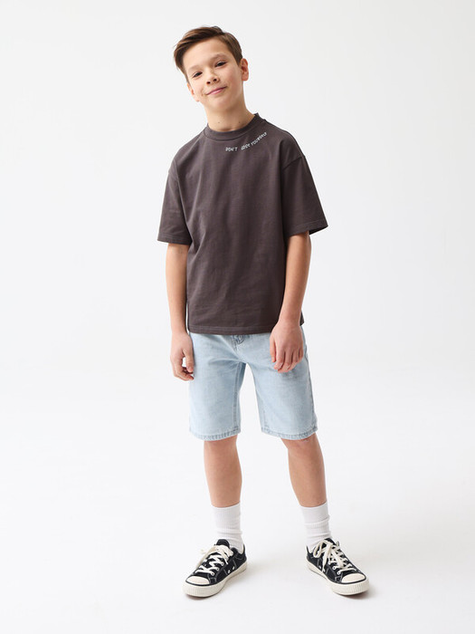 Джинсовые шорты прямого кроя. Плотный качественный деним из 100% хлопка. Расслабленный прямой крой со средней посадкой талии. Классическая застежка на молнию и пуговицу, шлевки для ремня, пять карманов. Представлены в 2 цветах – светло-голубой и табачный. На модели представлен размер 146. Размерный ряд 128 – 176 см.