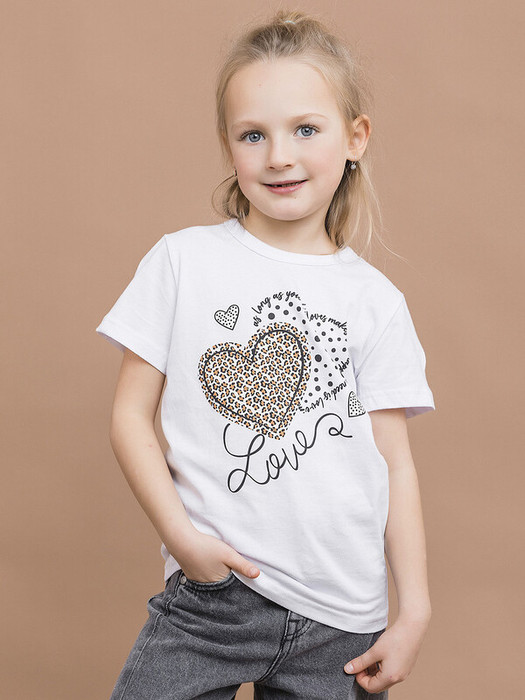 Футболка для девочки с коротким рукавом в белом цвете. Детская футболка с принтом в виде сердца выполнена из натурального хлопка, что обеспечивает комфорт и безопасность для кожи. Подойдет для повседневной носки дома, в детском саду, на прогулки и спортивные секции.Характеристики:Ткань: 100% хлопокПроизводитель: batik