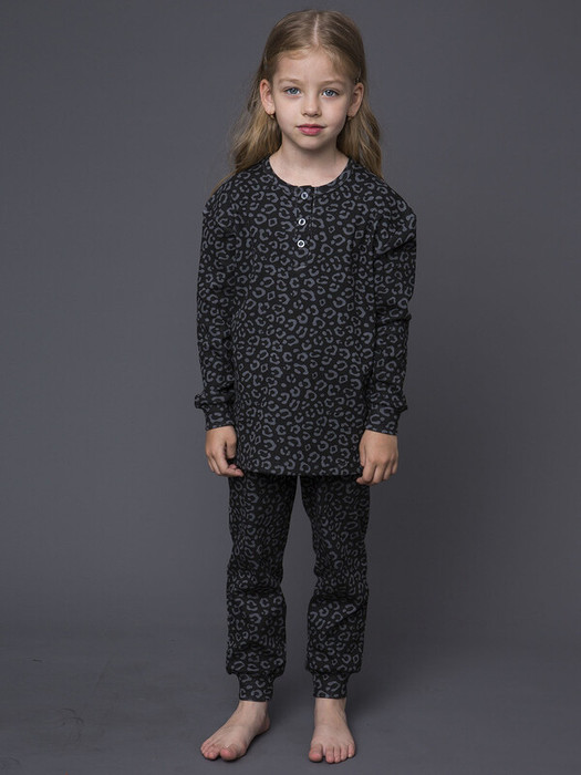 Пижамный комплект для девочки состоит из футболки с длинным рукавом и брюк в графитовом цвете. Удобная и эластичная ткань. Комфортный вариант на каждый день.Характеристики:Ткань: Кашкорсе 95% хлопок 5% эластанПроизводитель: batik