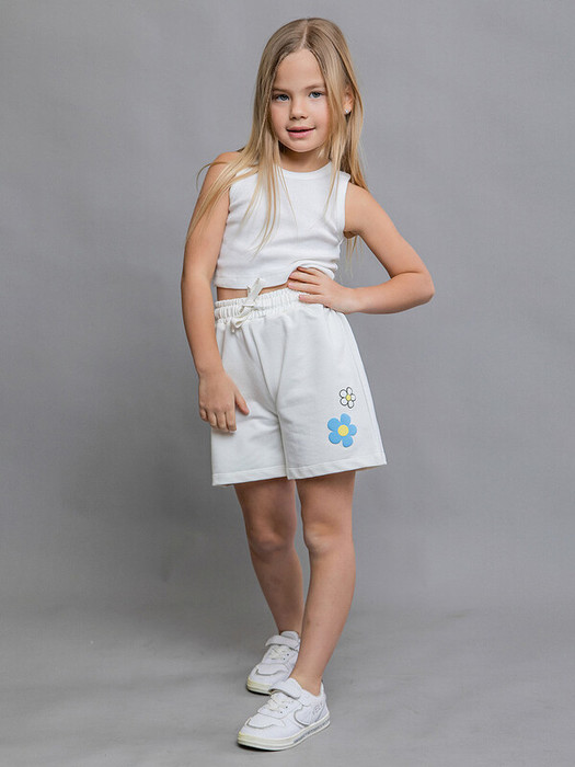 Шорты для девочки трикотажные удлиненные в молочном оттенке из футера. Выполнены из качественного износостойкого хлопка. Ткань не потеряет свой первоначальный вид после множества стирок. Имеют широкий эластичный пояс с шнурком. С одной стороны рисунок в виде цветов.Характеристики:Ткань: футер 2х нитка 90% хлопок 10% полиэстерПроизводитель: batik