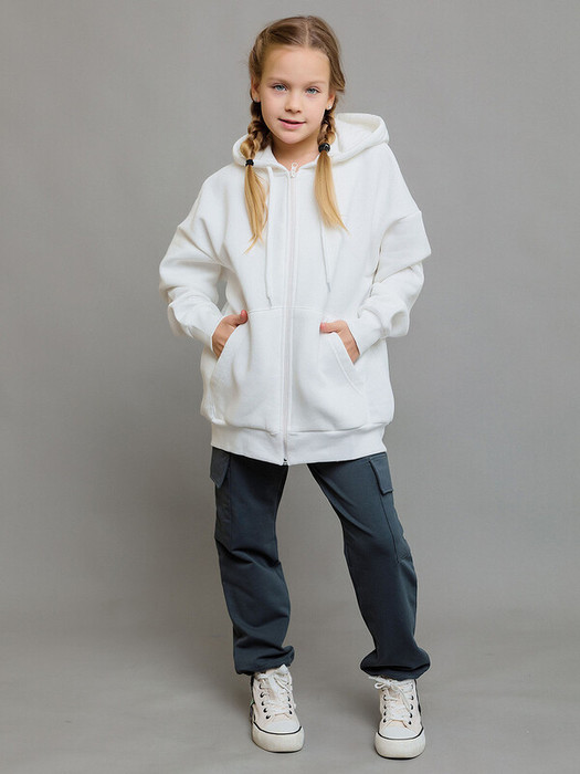 Толстовка детская на молнии с капюшоном из футера с начесом. Белая однотонная толстовка кроя оверсайз с карманами по бокам. Уютное и стильное дополнение к гардеробу ребенка.Характеристики:Ткань: Футер 3х нитка с начесом 90% хлопок,10% полиэстерПроизводитель: batik