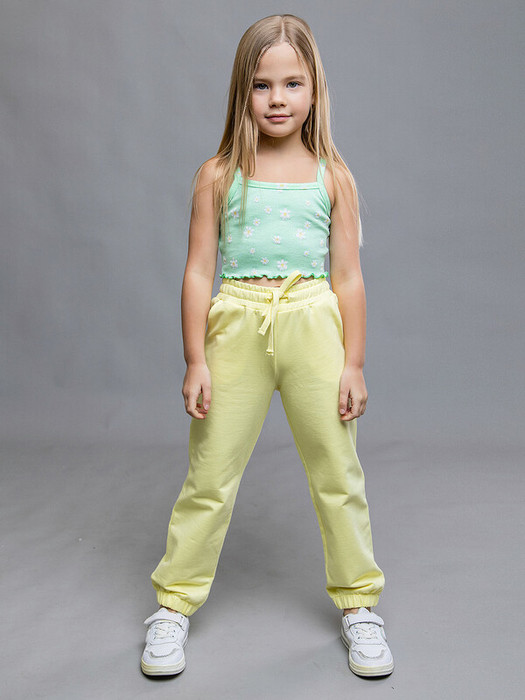 Топ (майка) для девочки зеленая из кашкорсе с принтом в виде ромашек. Кроп-топ в рубчик изготовлен из натуральной ткани (кашкорсе) с добавлением эластана для лучшего прилегания к телу (95% хлопок, 5% эластан), из-за чего хорошо держит свою первичную форму и имеет высокую эластичность. Базовый повседневный вариант в жаркую погоду.Характеристики:Ткань: Кашкорсе 95% хлопок 5% эластанПроизводитель: batik