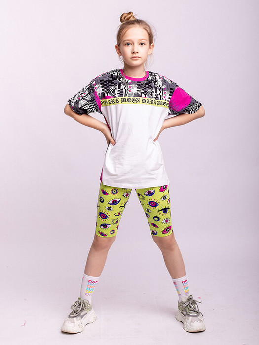 Велосипедки для девочки эластичные с принтом в виде разноцветных глаз.