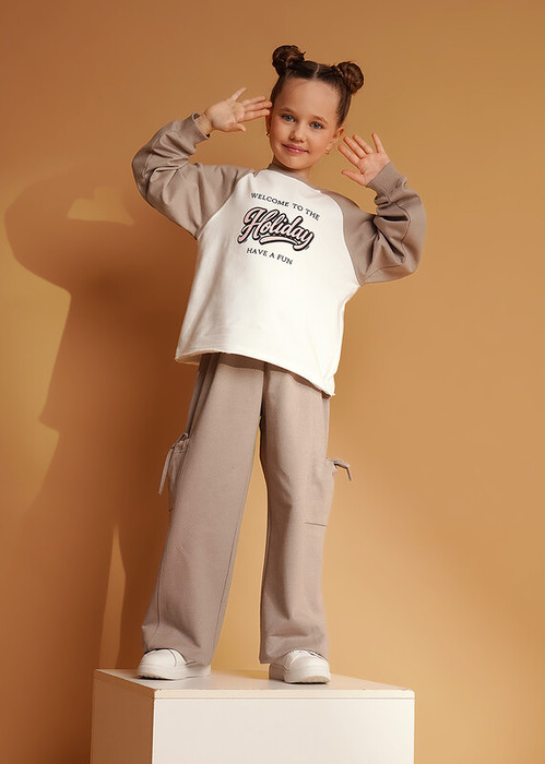 Совместные покупки Нижневартовск Детская одежда Спортивные штаны — 24.03 Clever Брюки детские для девочки CLE 867375/15ан св.коричневый/кофейный