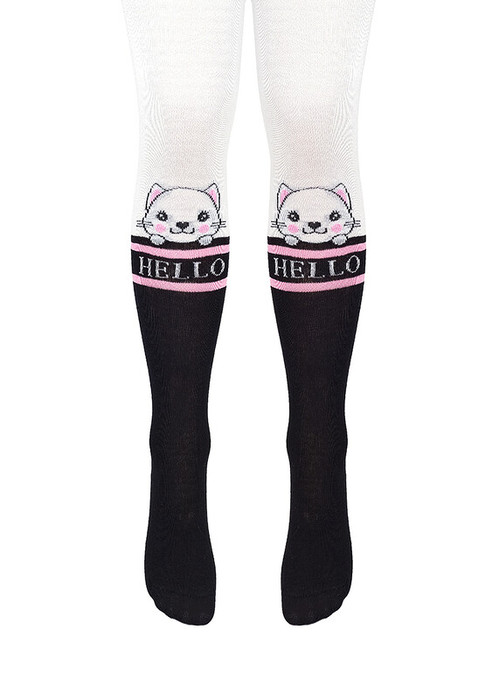 колготки для девочки с имитацией гольф,  с рисунком кошки