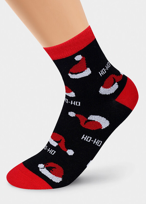 новогодние детские носки с рисунком шапки деда мороза