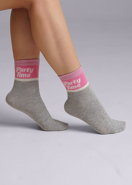 стильные носки для девочки с надписью ""время вечеринки"" , резинка украшена люрексной нитью