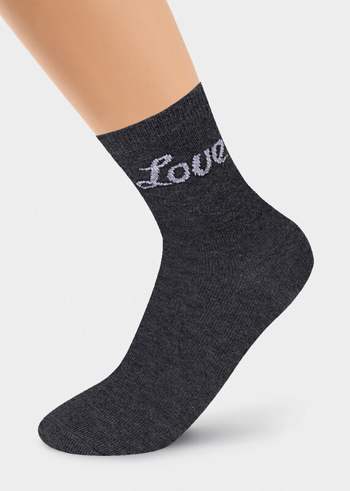 однотонные носки для девочки с напсиью на паголенке LOVE выполненной из люрексной нити