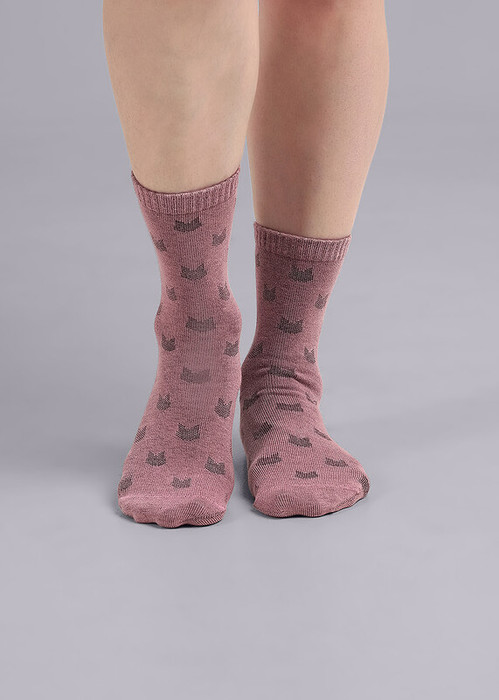 носки для девочки с вывязанным рисунком кошки( безниточная технология)