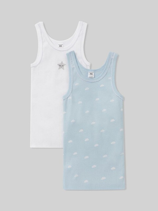 Трикотажные майки в комплекте 2 шт на лямках из натурального хлопка. Оригинальные набивка и принт выполнены из стойких, гипоаллергенных текстильных красителей. Изделие сохраняет цвет и форму после многократных стирок. Все трикотажные полотна производятся в соответствии с нормами Швейцарского сертификата ЭкоТекс.