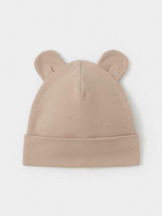 Шапка с отворотом для новорождённых из мягкого эластичного трикотажа интерлок, произведённого из натурального хлопка. Украшена декоративными ушками. Все трикотажные полотна производятся в соответствии с нормами швейцарского сертификата ЭкоТекс.