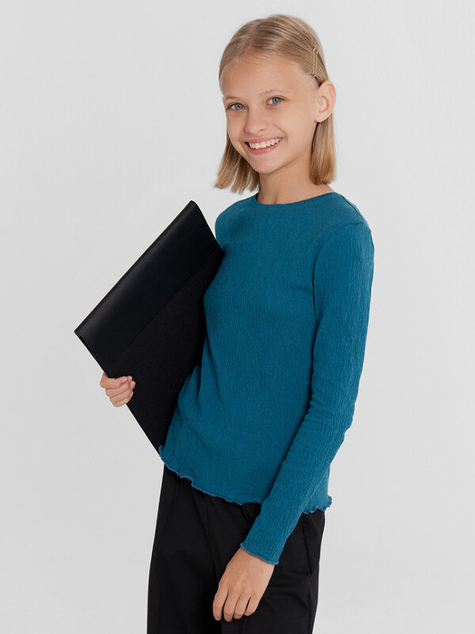 Джемпер прилегающего силуэта. Горловина обработа обтачкой из основного полотна. Рукав втачной длинный. Низ изделия и рукавов обработан микрооверлоком.