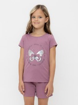 Футболка из трикотажного кулирного полотна. Силуэт прямой. Перед и спинка без швов и рельефов. Рукава короткие. Горловина круглая, с обтачкой из рибаны. Стильная футболка с ярким дизайном!