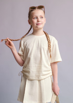 Футболка прямого силуэта укороченная. Перед и спинка цельнокроенные.