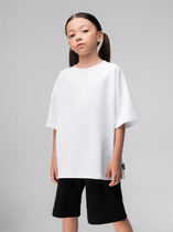 Топ для девочек прилегающего силуэта. Горловина круглая. Проймы и горловина окантованы бейкой из основного полотна. Низ изделия обработан швом в подгибку.