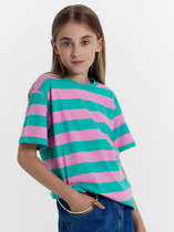 Футболка умеренного объема для девочки. 100% хлопок в составе – ткань мягкая, дышащая, приятная на ощупь. Контрастная обработка по горловине и рукавам в цвет принта – оригинальные визуальные акценты. Футболка отлично подходит для создания стильного образа весной и летом в паре со слоучами или леггинсами. Идеальна для активного детства – на каждый день, для учебы и занятия спортом.