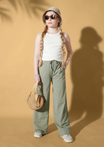 Футболка из модной ткани в рубчик для девочки. Благодаря преобладающим в составе хлопку и вискозе ткань изделия дышит и приятна на ощупь.  Эластан помогает сохранять форму. По бокам модели кулиски с тесьмой — актуальный тренд. С их помощью можно делать стильную сборку с одной или двух сторон. Такая футболка хорошо сочетается с различными шортами, леггинсами, кюлотами или джоггерами.