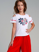 Классическая модель школьной футболки для девочки. Прямой силуэт и свободный рукав делают её удобной для любой фигуры и не ограничивают движения.