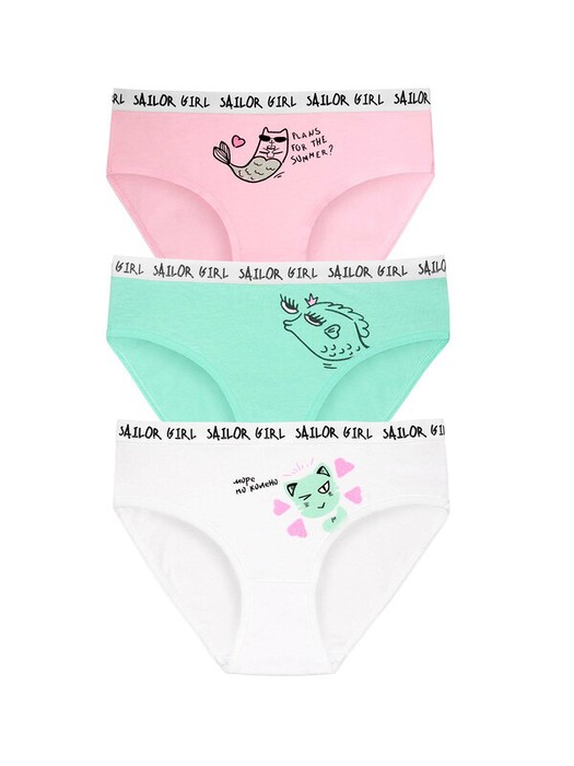 24.03 Pelican набор трусов для девочек GULB3389(3) Светло-розовый/ментол/белый