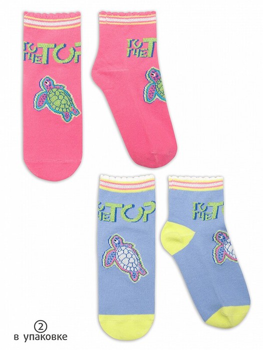 Набор из 2-х пар носков стандартной длины для детей. Носки с высоким содержанием хлопка и добавлением эластана не спадают, не садятся, не теряют форму. Не сползают с ног, с мягкой нетугой резинкой, которая не сдавливает ногу.  Носки яркие, цветные, прикольные, идеально подойдут для подарка девочке.