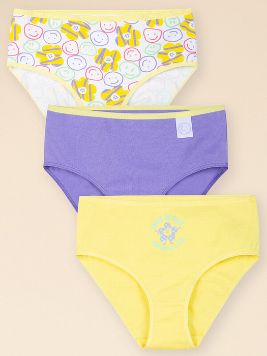 Вы в поисках качественного и комфортного белья для своего ребёнка? Тогда комплект (3 шт.) слипов высокой посадки для девочки — ваш идеальный выбор. В составе ткани преобладает хлопок — трусы мягкие, прекрасно пропускают воздух, давая коже ребёнка дышать. Эластан помогает изделию сохранять отличную форму в течение долгого времени. Благодаря качественному материалу и правильному крою модель идеально садится по телу — ребёнку удобно и днём, и ночью. Мягкая резинка не давит и не натирает. В комплект входят белые слипы, украшенные позитивным принтом в стиле граффити. Лаконичные сиреневые с изображением смайлика на декоративном вшивном ярлыке с контрастной жёлтой резинкой - изюминка модели. И трусики актуального нежно желтого цвета — их жизнерадостный цвет дополняет забавный принт с вдохновляющим текстом. Перевод принта: "Больше досуга, меньше давления". Все принты мягкие и долговечные, не боятся частых стирок. Слипы подходят как для повседневной носки, так и для занятий спортом. Оптимальный выбор для вашего ребёнк
