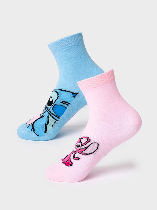 Набор из двух пар детских носков для девочки. В комплект входят носки двух расцветок с любимыми персонажами Лило и Стич. Носки выполнены из мягкого трикотажа, хорошо тянутся и комфортно сидят на ноге благодаря эластичной резинке в верхней части. Усиленные мысок и пятка.