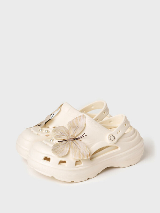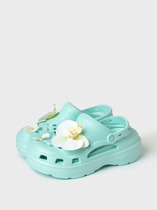 Сабо для девочки-подростка на высокой подошве. Модель выполнена из облегченного и прочного ЭВА. Материал хорошо моется.  Форма модели учитывает эргономику стопы. Оригинальность модели  придают большие съемные джибицы-бабочки. Модель имеет перекидной ремешок фиксации ноги.