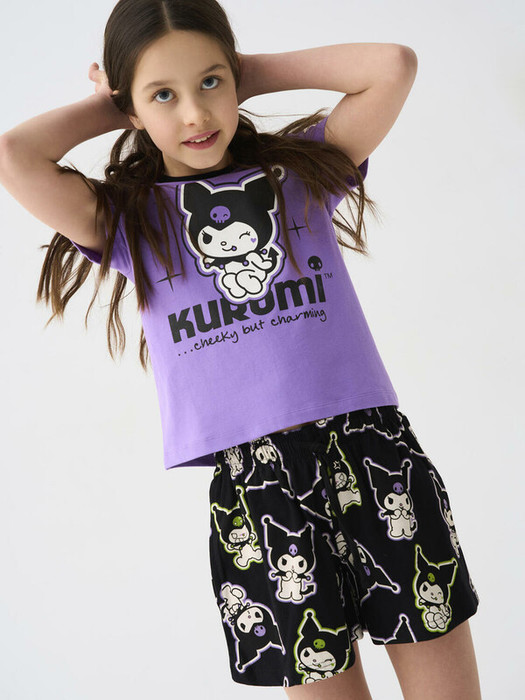 Шорты для девочки подростка. Модель свободного кроя из мягкого, хлопкового трикотажа джерси. Удобная посадка обеспечивается эластичным поясом со шнуром. Спереди — боковые карманы. Дизайн выполнен с любимым мультяшным героем Куроми.