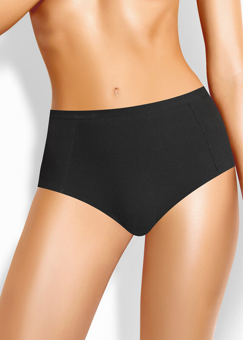 Трусы макси на высокой посадке из интерлока, состав 80% хлопок, 20% эластан. Боковые швы смещены в сторону переда, по ножке бесшовная обработка, полотно не распускается за счет особенностей плетения, по талии обработка жаккардовой резинкой.