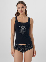 Комплект нижнего белья от торговой марки Индефини. В комплекте бюстгальтер и трусики. Бюстгальтер из полиамида, черного цвета, на косточках, без Push-up, с косточками по бокам, с кружевными вставками и обрамлением, с портупеей, на тонких лямках, на широком поясе, лямки регулируются. Трусы-слипы из полиамида, черного цвета, из кружевной ткани, с обрамлением, с декоративным вырезом сзади, на мягкой резинке, средней посадки.