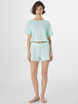 Пижама Indefini салатового цвета украшена нежным цветочным принтом, добавляя пижаме свежести и женственности.