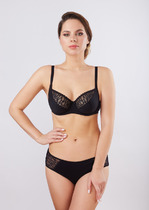 Бюстгальтер макси  из трикотажного кулирного полотна с отделкой эластичной сеткой, каркас 50 тип. Чашка с горизонтальным рельефом, верхняя деталь выполнена из сетки, нижняя деталь с вытачкой из кулирного полотна на подкладке из кулирного полотна. Верхний и боковой срезы чашки окантованы эластичной тесьмой.