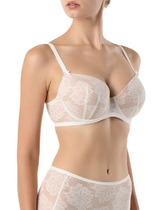 Бюстгальтер женский пушап, на каркасах 63 типа, с формованной чашкой  (СС-64.18), без стана.  Выполнен из микрофибры с отделкой по чашке кружевом с прямым краем. Чашка обтянута микрофиброй с подформовкой, по верхнему краю  деталь из кружева.