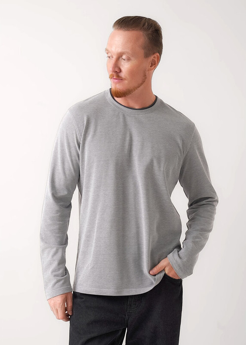Лонгслив из трикотажного полотна пике с имитацией двойной горловины. Модель дополнена имиджевой фурнитурой. Данное изделие отличное дополнение к брюкам или джинсам. Прекрасно подойдёт для встречи с друзьями или похода на работу.