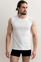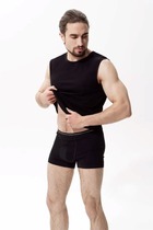 Мужская майка-борцовка из хлопкового полотна с эластаном на широких бретелях с авторским принтом. Длина у изделия стандартная. Майка идеально подходит для занятий спортом и повседневной носки.
