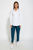 Рубашка из текстильного полотна поплин, прямого силуэта на пуговицах с отложным воротником на стойке.По спинке кокетка.Рукав рубашечный полной длины, по низу рукава манжеты на пуговицах, низ изделия фигурный, спереди нагрудный карман.Производство Турция.