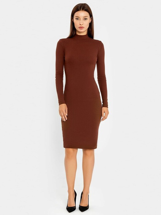 Однотонное платье женское с длинными рукавами, прилегающего силуэта из высококачественного хлопка в рубчик. Вырез круглый, с воротником-стойкой. Рукава длинные, облегающие. Длина модели чуть ниже колена. Отличное базовое платье, которое станет основой вашего стильного образа. Такое платье точно не будет ждать своего часа на полке в шкафу. В осенне-зимний период так хочется надеть что-то максимально комфортное и  уютное - эта модель именно такой вариант. Облегающее платье не стесняет движений, кожа дышит, нет парникового эффекта, материал эластичный отличного качества, слегка тянется, что делает платье женское еще более комфортным в носке. Платье идеально подойдет для прогулок, встреч с друзьями, свидания и похода в кино. Женское платье представлено в широкой цветовой палитре, поэтому оно легко комбинируется с контрастными аксессуарами в любой цветовой гамме. Очень стильная модель для запоминающихся офисных и городских образов. Купить платье женское недорого можно у нас на сайте и в магазинах Mark Formelle!