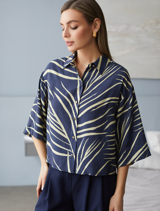 06.04 Vilatte Блузка из вискозы с лиоцеллом D29.263 темно-синий