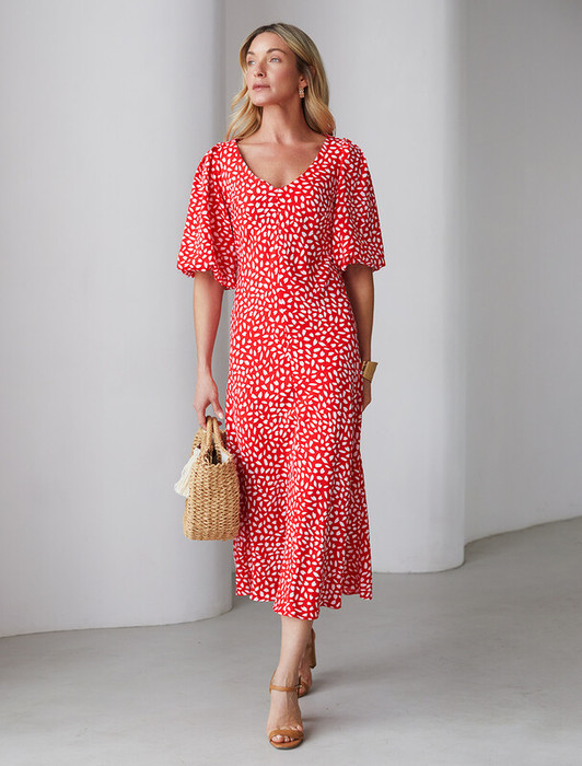 Платье А-силуэта кроеное по косой из струящегося полиэстера. Женственная модель с V-вырезом. Рукава выполнены на подкладке, которая позволяет им держать, заданную форму буфа даже во время движения. Высокотехнологичный, современный ПЭ легкий и гладкий - приятен к телу, как натуральный шелк, немного холодит и совершенно не мнется. Подойдет для торжественного выхода или повседневного образа.