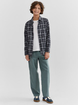 Брюки для мальчиков из ткани. Брюки длинные с классической линией талии. Силуэт прямой, брюки заужены немного к низу. Пояс цельнокроеный. Верхний срез брюк