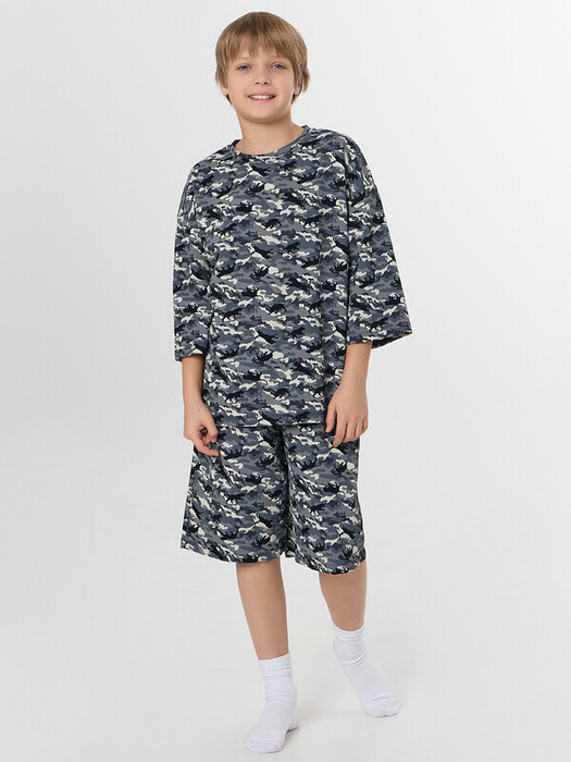 Комплект для мальчиков состоит из джемпера и шортов.