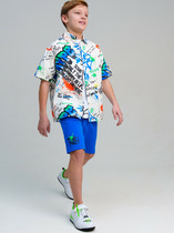 Сорочка верхняя для мальчиков прямого силуэта с воротником. По переду обработана застежка на пуговицы и петли. Диаметр пуговицы 1 см, 4 прокола. Рукава короткие, втачные, слегка спущены. На спине кокетка. Нижние срезы изделия и рукавов обработаны швом в подгибку.