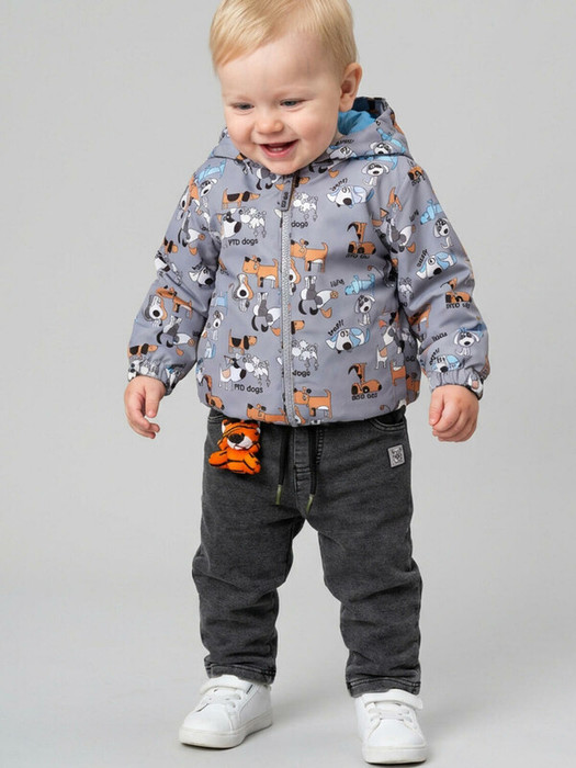 Детские брюки для мальчика. Модель прямого силуэта, выполнена из мягкого хлопкового трикотажа с эффектом денима. У брюк высокий комфортный пояс на широкой резинке и шнурок для регулировки. Спереди — два удобных кармана. Декоративная нашивка, а на левом кармане — съемный брелок в виде тигренка.