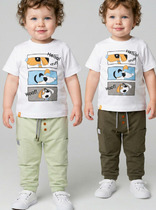 Комплект детских брюк-джоггеров для мальчика. Набор из двух джоггеров выполнен из хлопкового трикотажа джерси. Модель прямого кроя со средней посадкой на талии. Пояс выполнен на резинке, дополнительно регулируется шнурком. На бедрах расположены удобные накладные карманы. Декоративные нашивки со светоотражающим эффектом. В нижней части брючин предусмотрены эластичные трикотажные манжеты для лучшей фиксации.