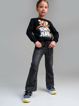 Джинсы детские для девочки. Джинсы из сверхудобного эластичного материала Loop Denim. Loop denim имеет внешний вид классической джинсы, а по тактильным ощущениям мягкий и комфортный, как трикотаж. FLARE FIT - джинсы клеш. Джинсы на резинке со шнурком. 4 кармана.